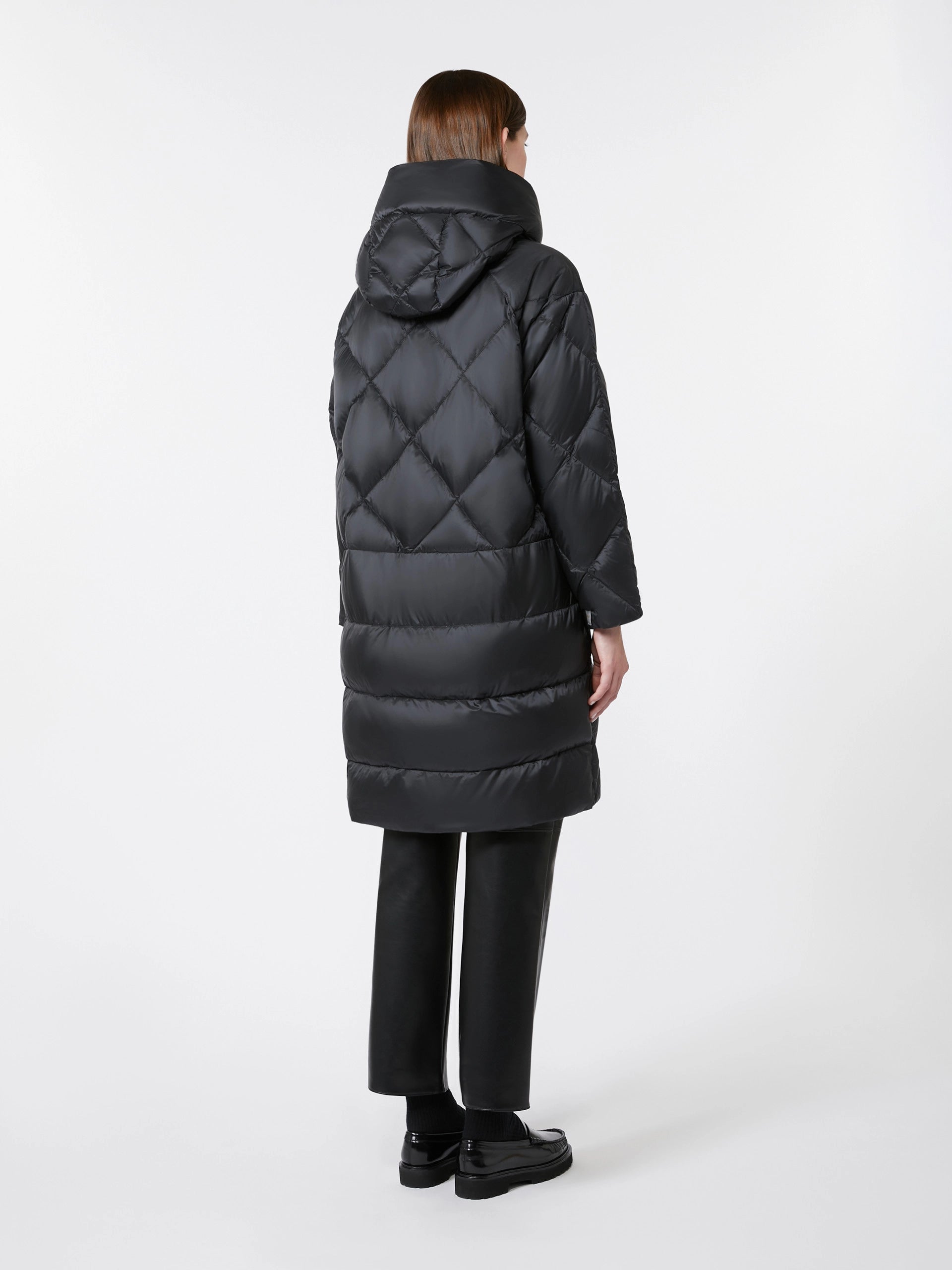 Straight midi dawn jacket featuring an all-over quilted diamond pattern with horizontal stripe detail at the back hem.