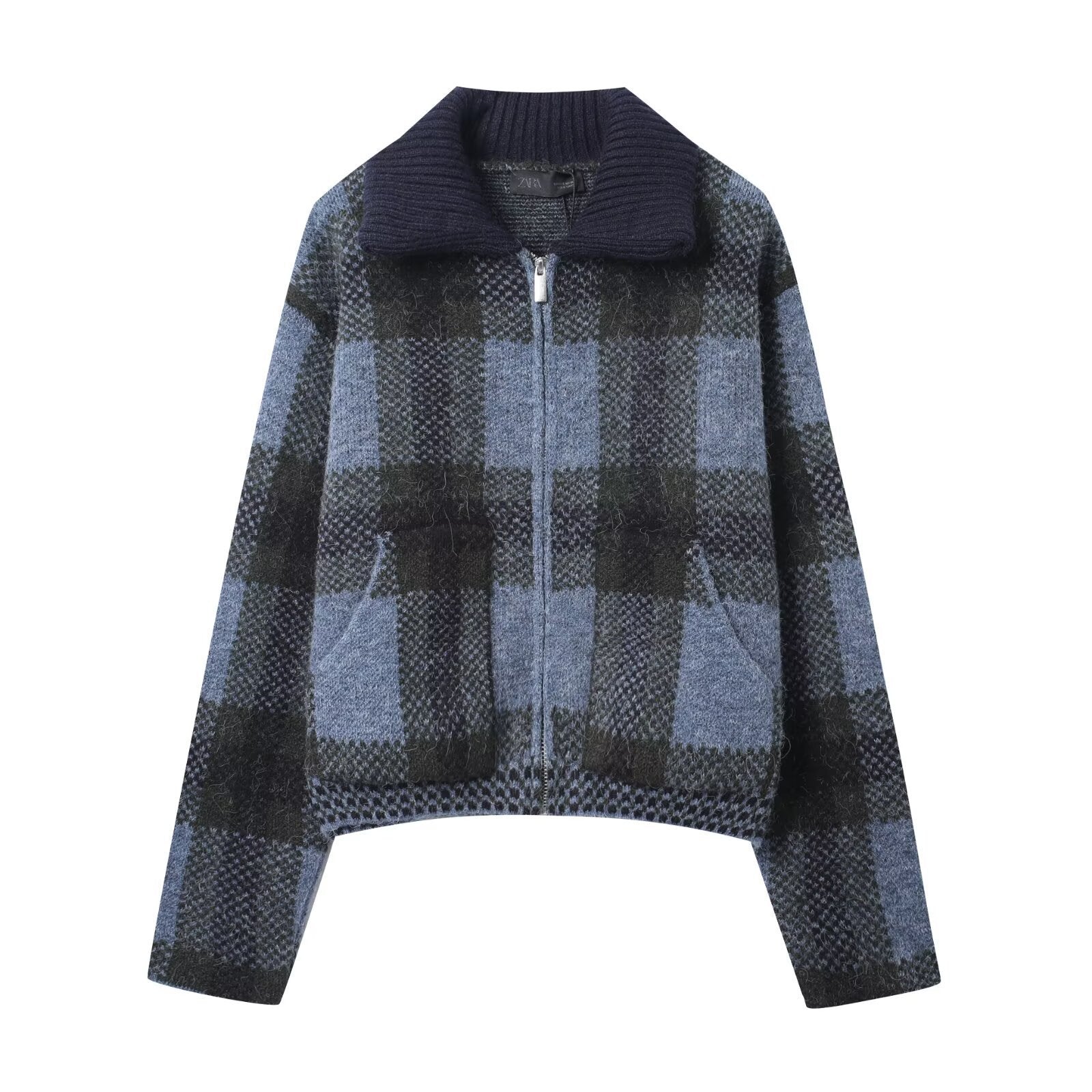 Talia | Checked Knit Bomber Jacket